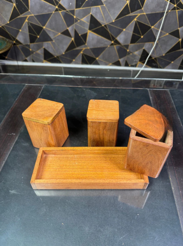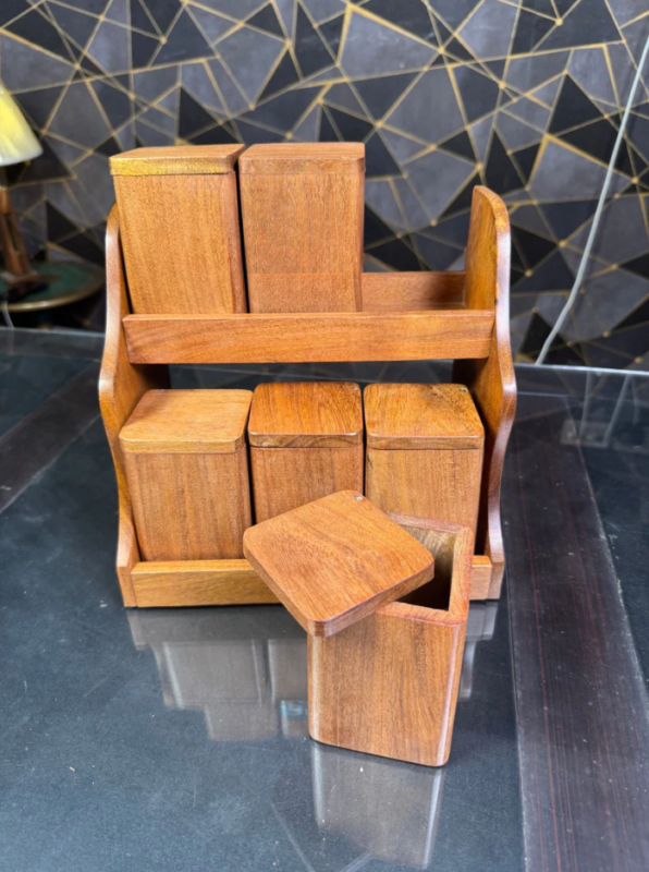 Pure Wooden Spice Box Set – Natural Masala Storage طقم علبة توابل خشبية طبيعية – تخزين بهارات أنيق